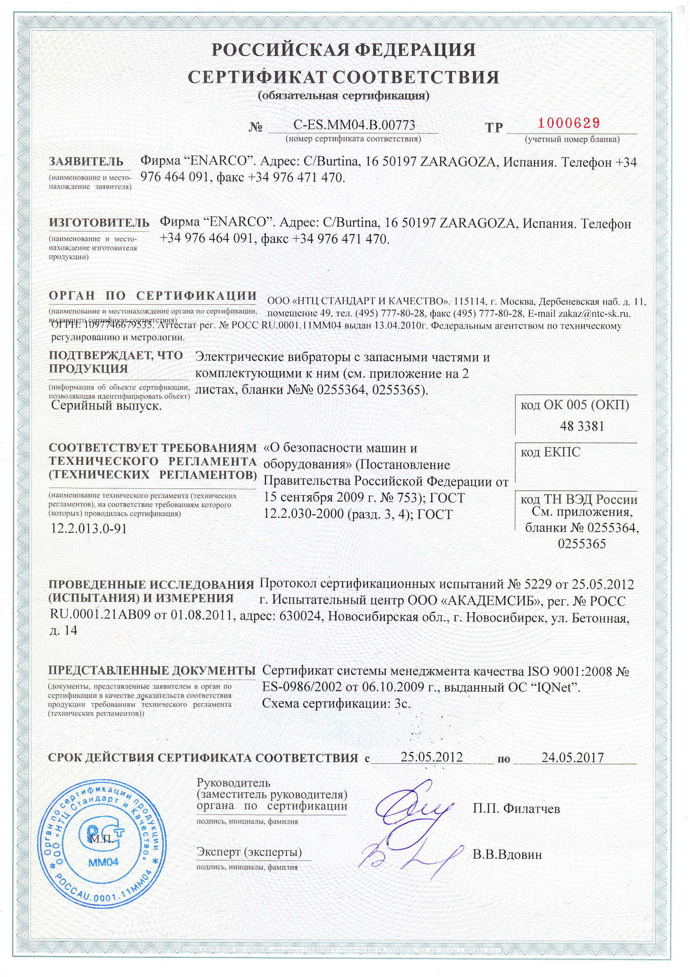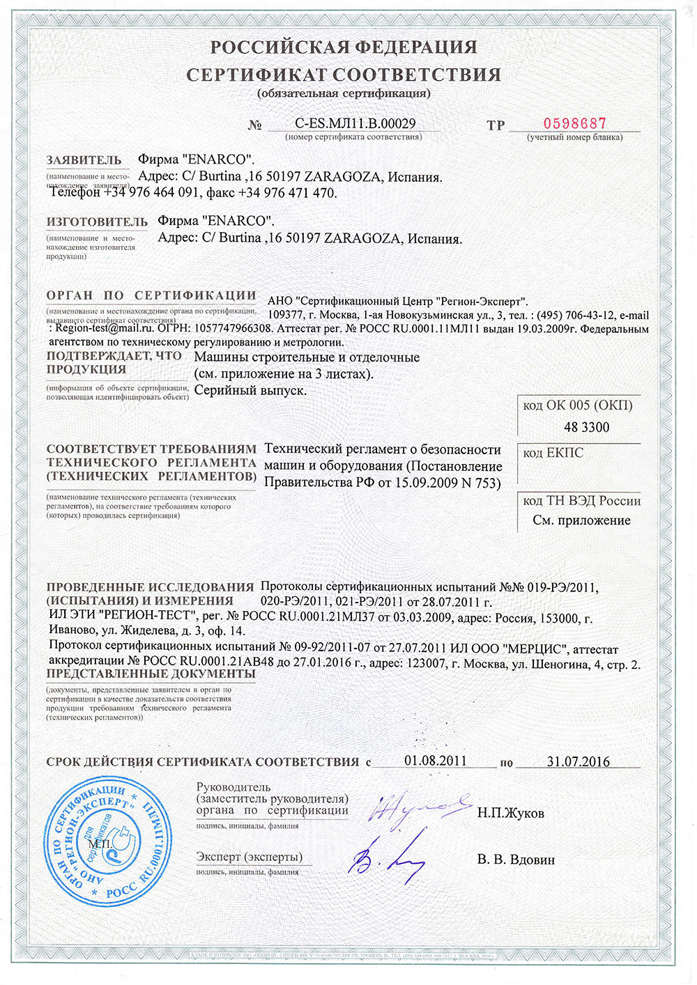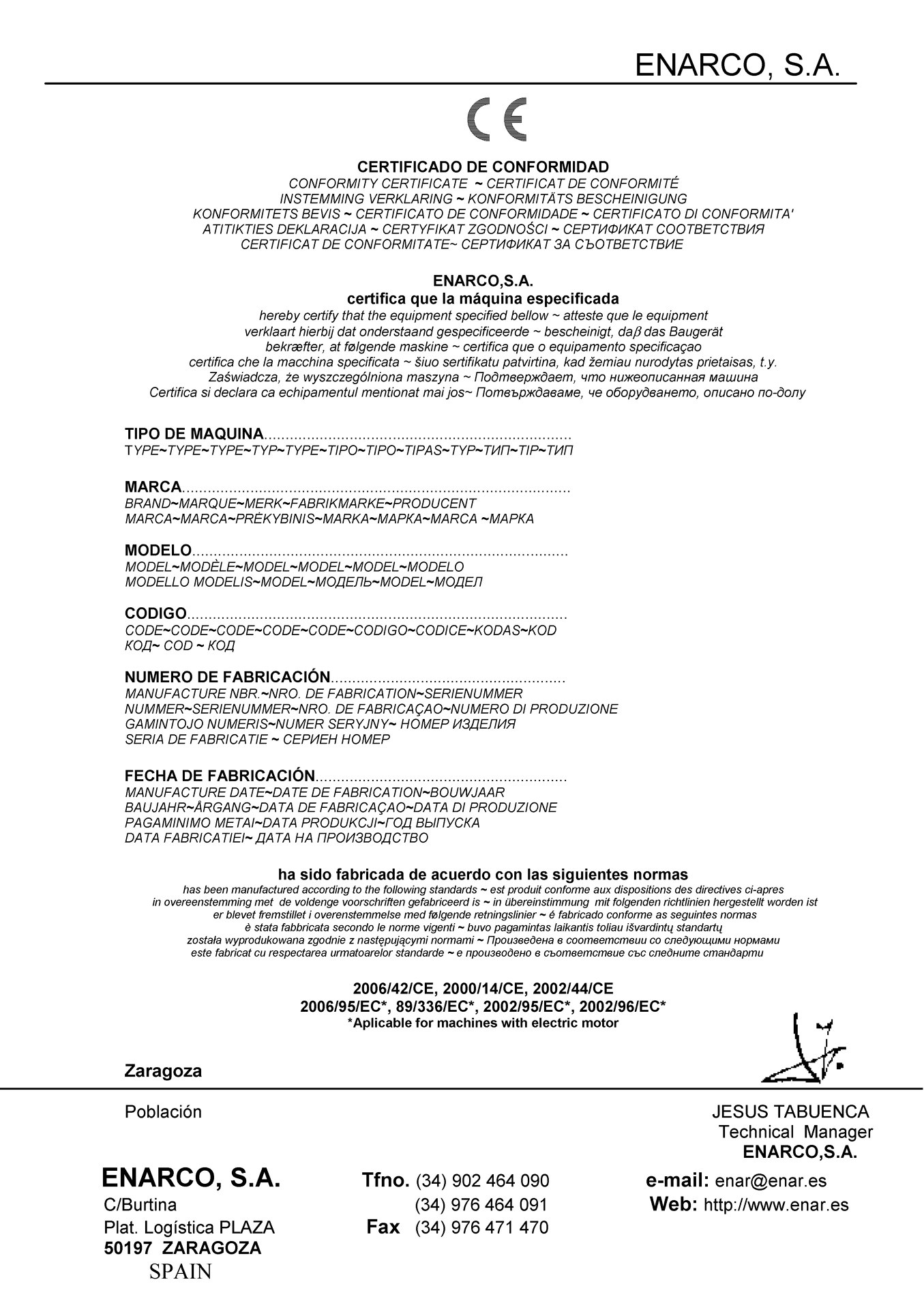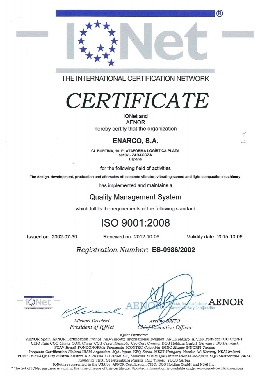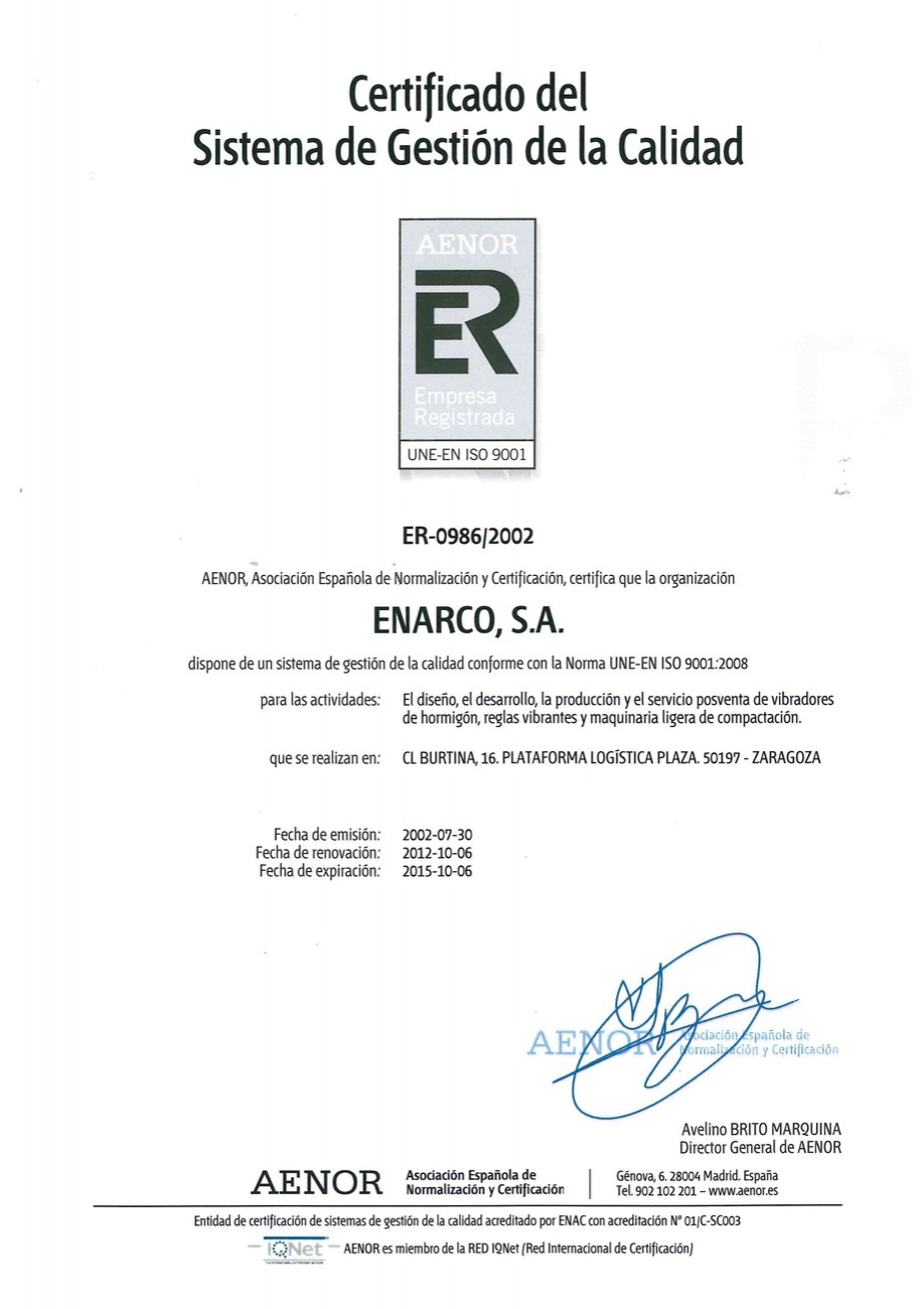 В настоящее время, у компании Enarco 10 000 м2 производственных площадей в Сарагосе, открытой в 2009 году, где более 50 000 единиц из трех производственных линий: глубинные вибраторы, виброрейки и уплотнительная техника - разрабатываются, изготовливаются и запускаются в серийное производство.